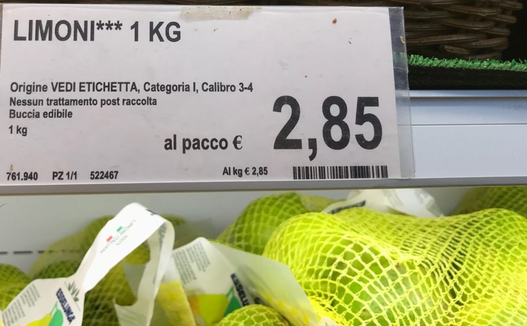 Per esempio, per i limoni, servono anche ragione sociale di chi ha confezionato, la categoria (extra, prima o seconda), il calibro, l’eventuale uso di conservanti (solo per i limoni convenzionali, dato che non sono ammessi in quelli biologici), eccetera.