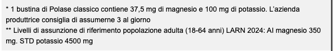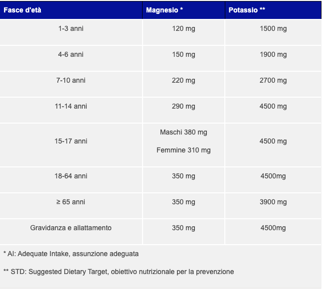 Gli integratori di magnesio possono riportare i claim “contribuisce alla riduzione di stanchezza e affaticamento, all’equilibrio elettrolitico, al normale metabolismo energetico, al normale funzionamento del sistema nervoso, alla normale funzione muscolare, alla normale sintesi delle proteine, alla normale funzione psicologica, al mantenimento di ossa e denti normali, al processo di divisione cellulare”. Quelli di potassio, invece, possono indicare che “contribuisce al normale funzionamento del sistema nervoso, alla normale funzione muscolare, al mantenimento della normale pressione arteriosa”. Come per tutti gli integratori, quindi, questi claim fanno riferimento al normale ruolo fisiologico dei due minerali, e non devono essere intese come effetti ‘potenzianti’ come sembrano suggerire le pubblicità.