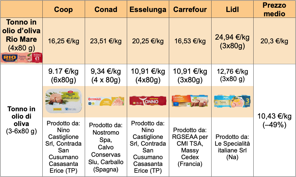 È chiaro che i prodotti non sono identici e, quando facciamo la spesa, oltre al prezzo, è giusto considerare anche altri aspetti, primi fra tutti gli ingredienti e le caratteristiche nutrizionali, poi chiaramente il nostro gusto personale, l’origine della materia prima e il nome l’azienda che fornisce alle catene i prodotti con il loro marchio. In ogni caso si tratta di un risparmio di tutto rispetto, di cui conviene tener conto quando si fa la spesa.