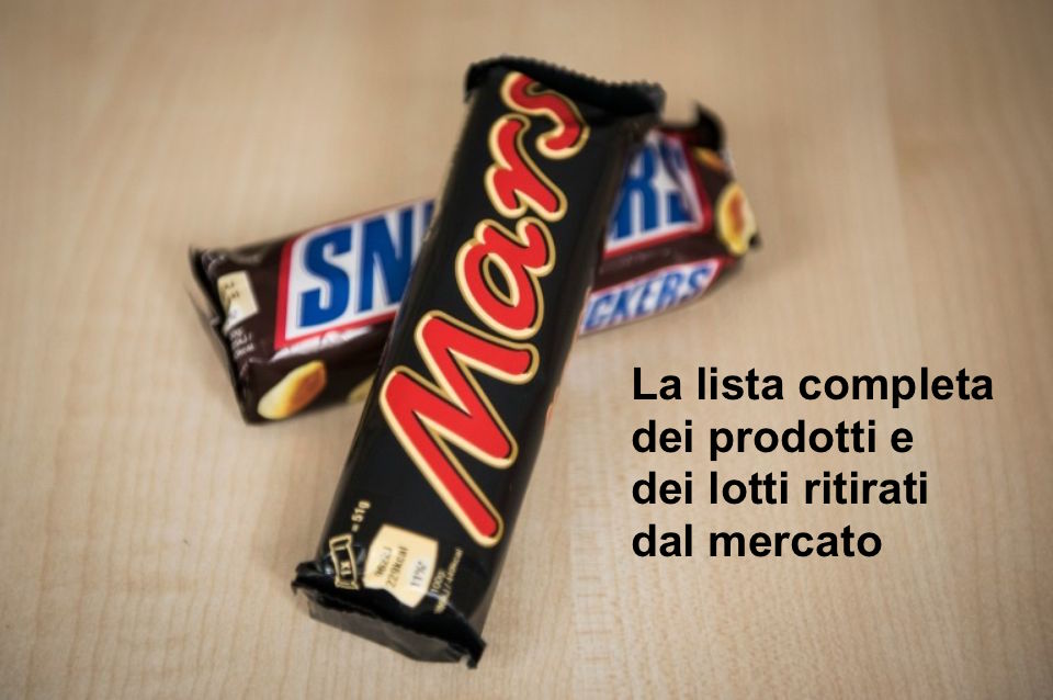 In Italia il richiamo riguarda 46 lotti suddivisi tra le barrette Mars nel formato Minis e Miniature e le barrette Snickers nel formato Multipack, Barra Singola e Miniature (la tabella  riassuntiva con l’elenco di tutti i lotti si trova in fondo a questo articolo).