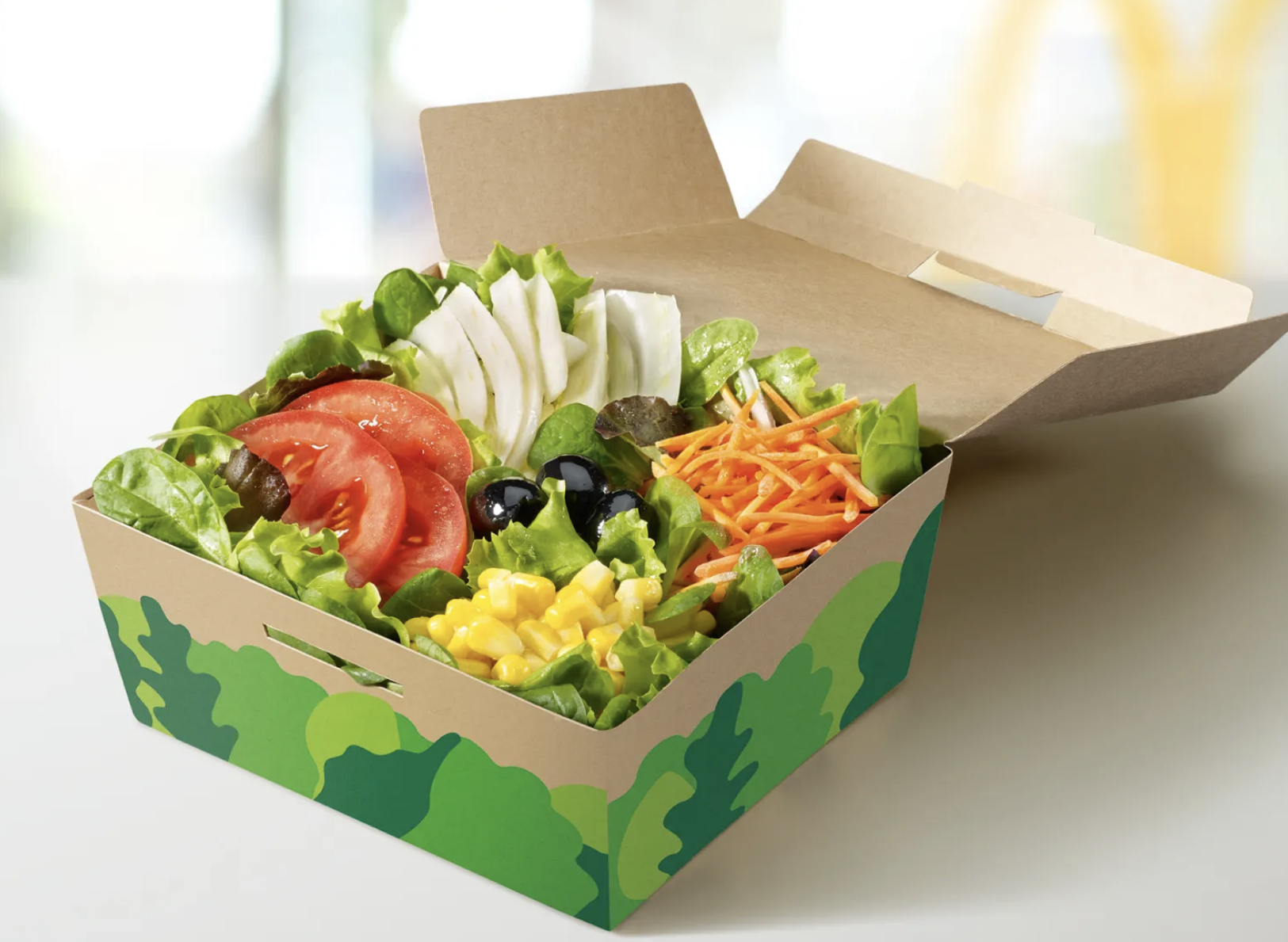 La catena regina del fast food, specializzata nella vendita di hamburger, Coca-Cola e patatine, non cambia certo vocazione in occasione delle Olimpiadi anche se rilancia con cinque insalate ad un prezzo troppo elevato.