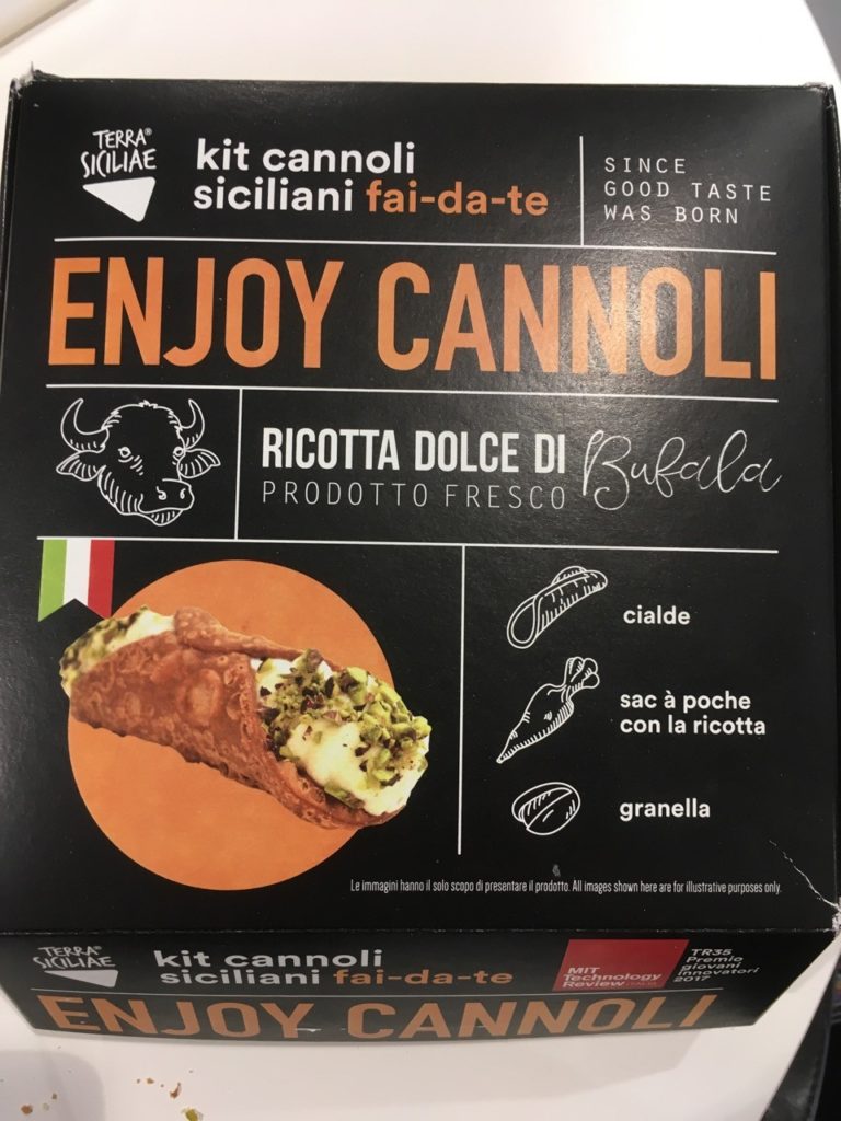 Un’idea molto curiosa è Enjoy cannoli, un kit con tutti gli ingredienti per la preparazione dei cannoli siciliani: cialde croccanti, ricotta di bufala in sac a poche, pronta per la farcitura, e granella di pistacchio (oppure gocce di cioccolato) per decorare.