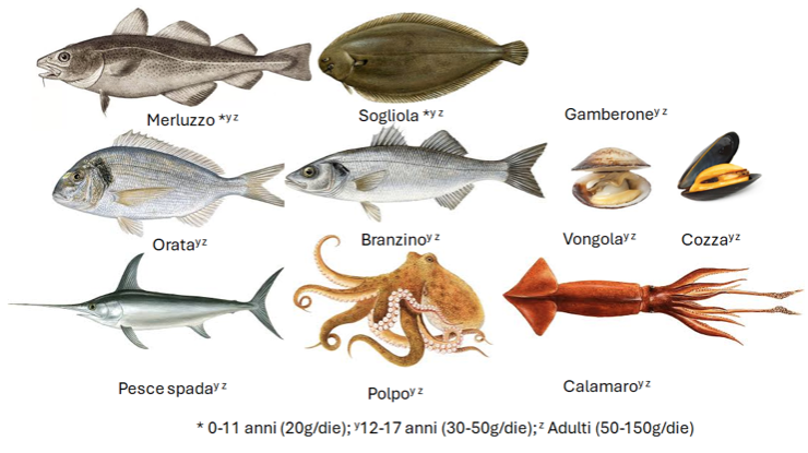 Salve, potete cortesemente riportare la “dose” di pesce da consumare in riferimento all’età? Questo aiuterebbe meglio ad un consapevole consumo di pesce/specie. Grazie