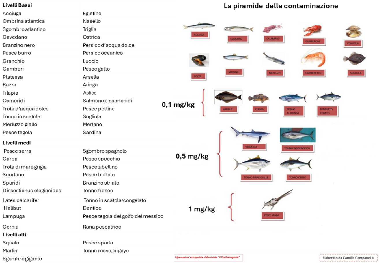 Negli ultimi anni, le raccomandazioni nutrizionali, incluse la Linee guida per una sana alimentazione del CREA e i pareri scientifici dell’EFSA del 2012 e del 2015, hanno incoraggiato il consumo regolare di pesce per via dei suoi benefici ben noti: proteine a elevato valore biologico, acidi grassi omega-3 a catena lunga, selenio, calcio, vitamina A e vitamina D. Tuttavia, si è parlato poco dei rischi legati alla contaminazione da metilmercurio (MeHg), la forma chimica con cui il mercurio (un metallo pesante neurotossico) si bioaccumula nel pesce e altri prodotti ittici, soprattutto nei grandi predatori marini, tra cui specie normalmente consumate in Italia come tonno, pesce spada e i grandi merluzzi.