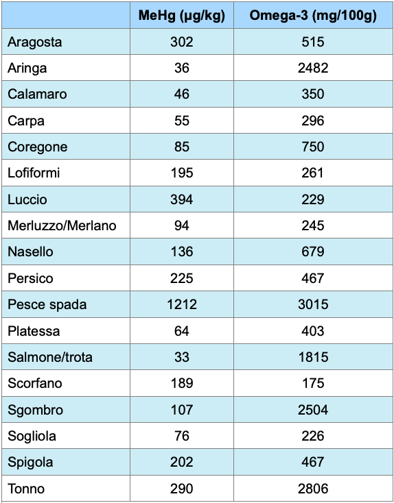 I bambini da uno a tre anni raggiungono infatti la dose tollerabile con circa una porzione e mezzo di pesce, quando per godere dei benefici nutrizionali sarebbe necessario consumarne 2-3 a settimana, mentre tra i tre e i 10 anni, il limite si raggiunge con appena mezza porzione, a fronte di una porzione settimanale raccomandata. Per le donne in età fertile invece la dose tollerabile si supera con 0,7 porzioni di pesce, ma i benefici si ottengono con 0,9 porzioni settimanali.
