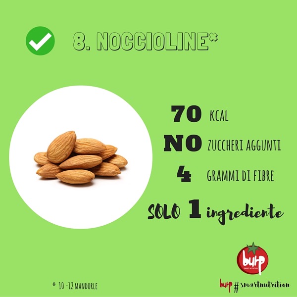 Ringrazio le sue precise osservazioni. Per quanto riguarda al numero di ingredienti del pane e formaggio personalmente non ho calcolato l’apporto calorico delle verdure considerando che sono minimi quando si condisce un panino inoltre quando si scelgono prodotti artigianali gli ingredienti non superano i cinque ingredienti come sucede con una merendina confezionata che superano tante volte i 10 ingredienti ( Lo scopo del post è favorire un’alimentazione bilanciata ma semplice). Per ultimo se parliamo di scambio di alimenti le mandorle e le noccioline appartengono allo stesso gruppo della frutta secca a guscio e offrono (nella maggior parte dei casi) gli stessi nutrienti.