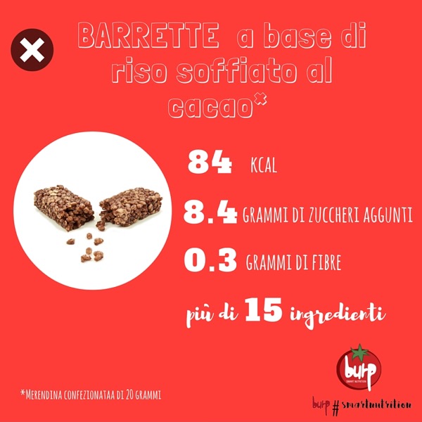 Di seguito le immagini elaborate dalla la dott.sa Abril Gonzalez Campos con varie merende salutari (in verde) che possiamo preparare a casa in alternativa a quelle fornite dall’industria alimentare (in rosso). Per approfondire l’argomento visitare il sito “Burp smart nutrition“.