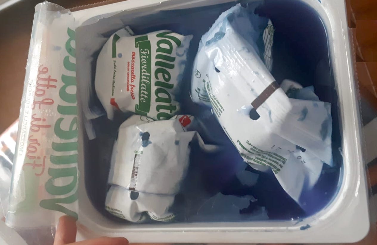 – Vorrei segnalare l’acquisto di una confezione di mozzarelle Vallelata comprate un paio di giorni fa in un punto vendita Coal di Chieti e con scadenza al 03/07/21 Lotto, L210167. Aprendo la confezione abbiamo riscontrato che le mozzarelle sono diventate blu, compreso il liquido che ha cambiato colore. È già capitato anche un’altra volta e riportandole al punto vendita, ci hanno detto che erano una partita andata a male. Enry