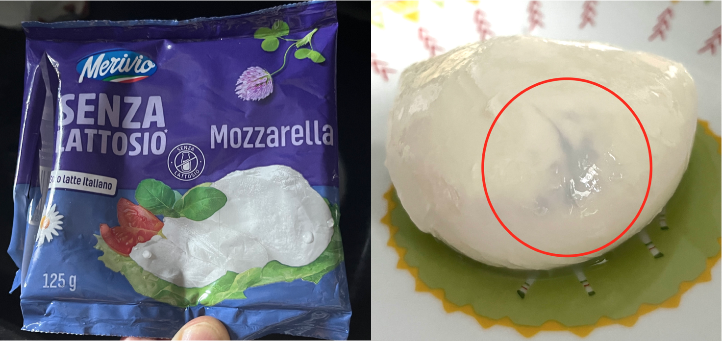 Periodicamente riceviamo fotografie di mozzarelle blu dai nostri lettori. Questa volta tocca a una mozzarella senza lattosio di Lidl, segnalata da un lettore prima delle vacanze. Finalmente è arrivata la risposta della catena che spiega cos’è successo