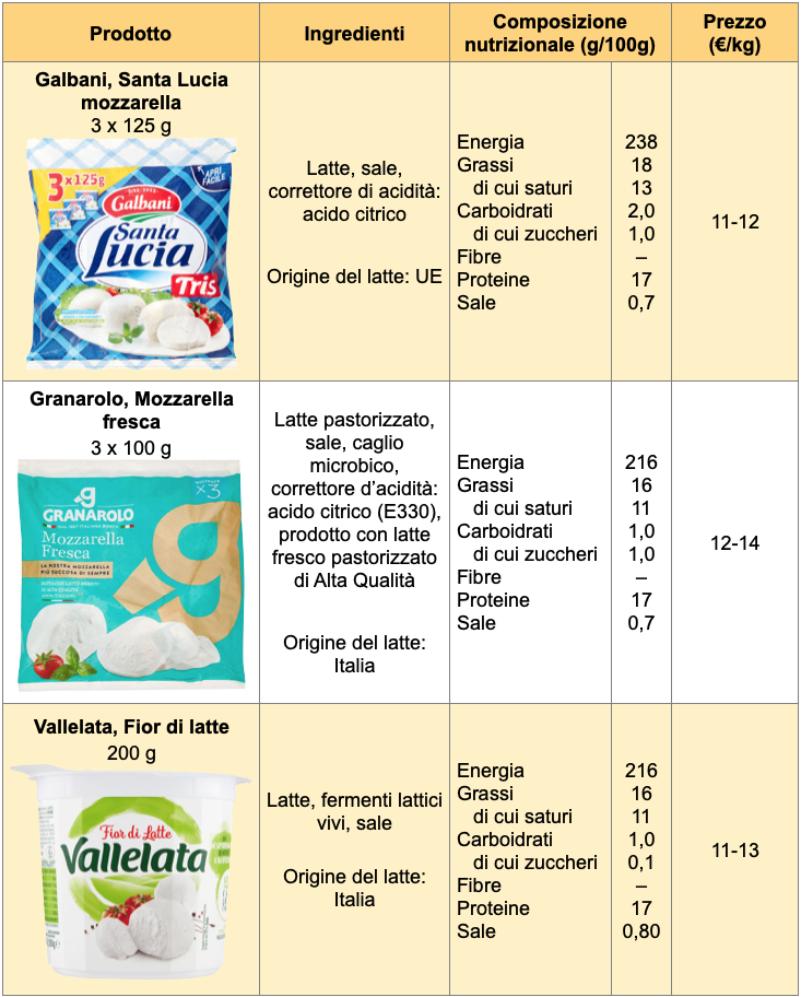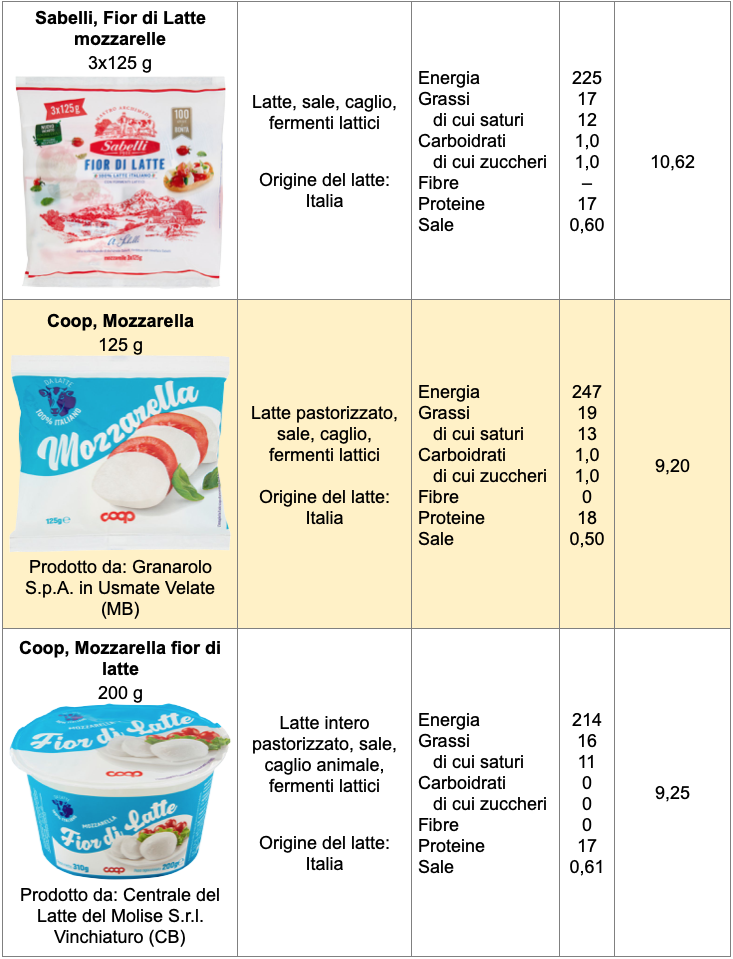 Senza entrare nel merito del gusto, che rimane un fattore individuale, abbiamo fatto un confronto fra le mozzarelle a marchio Santa Lucia, Granarolo, Vallelata e alcuni prodotti Coop, Esselunga e Carrefour.