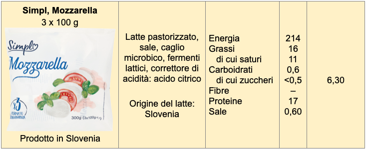 Per quanto riguarda la provenienza del latte, in genere è italiano. Troviamo però latte UE nella mozzarella Santa Lucia oltre che nelle linee Smart e Spesotti, mentre per la mozzarella Simpl si utilizza latte sloveno.