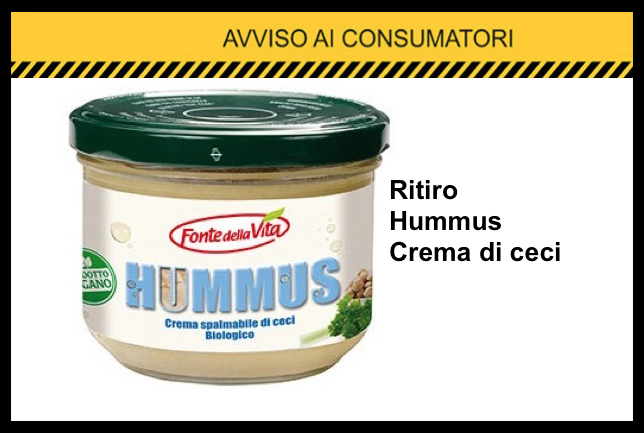 NaturaSì ha ritirato dagli scaffali dei suoi punti vendita il prodotto Hummus – crema spalmabile di ceci della marca Fonte della Vita. L’avviso riguarda le confezioni da 200 grammi.