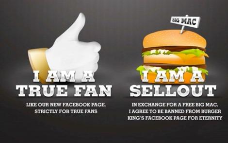 Per fare la selezione, Burger King ha offerto in regalo a tutti i fan della vecchia pagina un buono per l’acquisto di un panino simbolo del suo principale concorrente, il Big Mac. Chi accettava il regalo, esprimeva in realtà la propensione vero McDonald’s e quindi il consenso a essere bannato per sempre dalla pagina Facebook di Burger King.