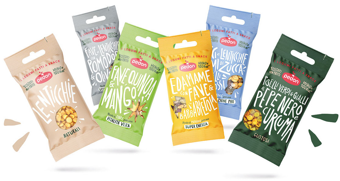 Pedon in Veneto propone una vasta gamma di prodotti a base di legumi come piselli, fave, ceci e lenticchie, tostati e abbinati a frutta e verdura. Il tutto in confezioni tascabili, riciclabili e adatte al consumo come snack. Si tratta di un nuovo trend che sembra incontrare il favore di molti consumatori.
