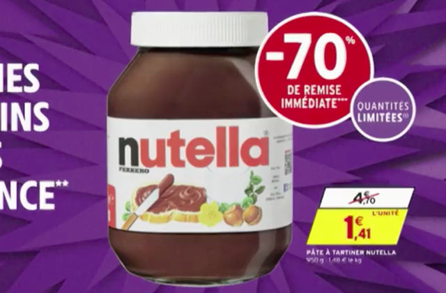 “Nutella con il 70% di sconto! Nei nostri supermercati potete comprare un barattolo di crema da 950 g a 1,41 € anziché 4,70″. Così diceva il volantino della catena di supermercati francesi Intermarché de la Loire nel mese di gennaio 2018. L’iniziativa ha provocato vere e proprie scene di assalto e si è conclusa con 1,2 milioni di barattoli venduti. Ci sono riprese amatoriali che hanno fatto il giro della rete, dove si vedono persone in fila per entrare nei punti vendita e clienti che si azzuffano per accaparrarsi un vasetto della crema.