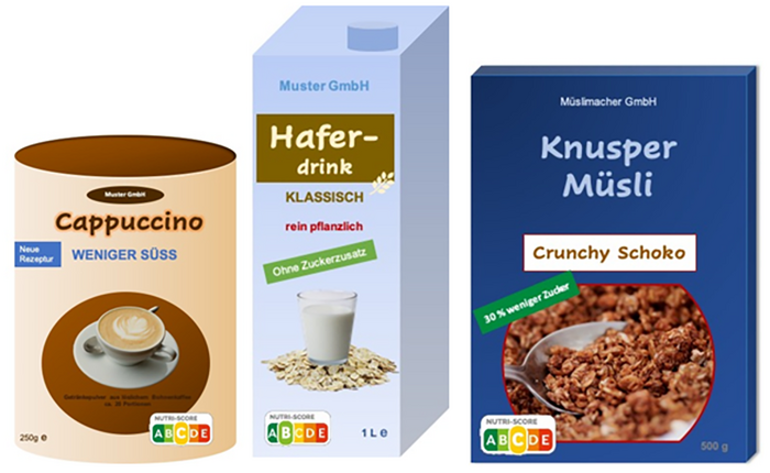 Come riferito su PLoS One, infatti, a tutti i partecipanti sono stati mostrate le immagini di tre prodotti: una bevanda a base di avena, un muesli al cioccolato e un cappuccino istantaneo (vedi immagine sopra). Su di esse erano state aggiunte indicazioni relative agli zuccheri come ‘zuccheri ridotti del 30%’ o ‘senza zuccheri aggiunti’, tutte permesse dall’apposita normativa europea (regolamento CE 1924/2006), con o senza la presenza del Nutri-Score, l’etichetta a semaforo adottata dalla Germania.