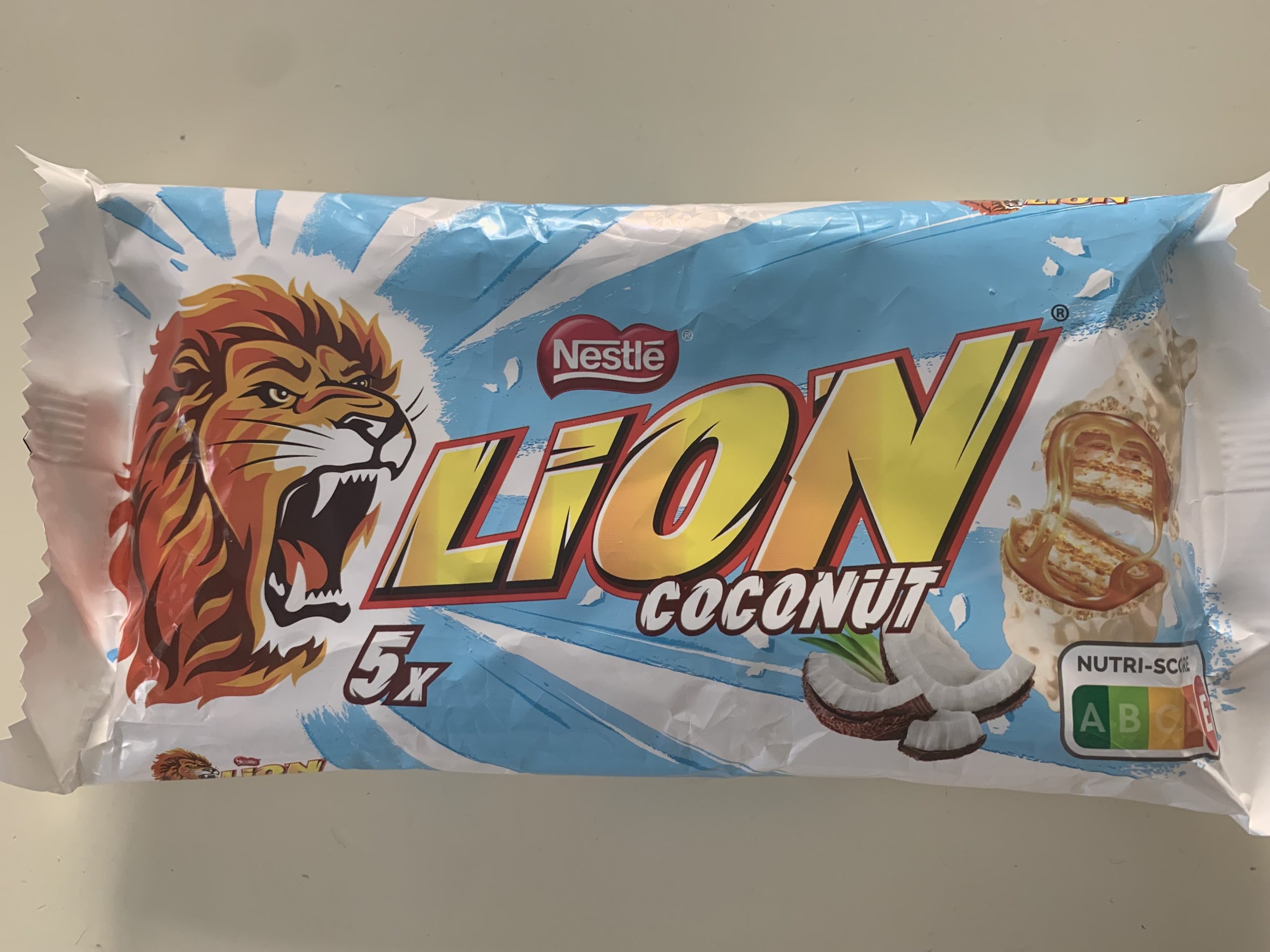 Leggo a commento della foto del Lion di Nestlé, giusto per stare in tema “L’etichetta Nutri-Score su una confezione di snack Nestlé venduta in Italia”.