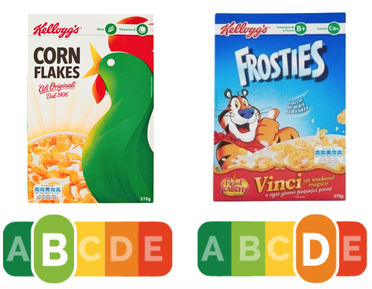 L’etichetta Nutri-Score, adottata anche da Belgio e Spagna, consiste in un logo a colori con cinque lettere. La lettera ‘A’ abbinata al verde scuro indica la valutazione migliore, mentre la ‘E’ abbinata al rosso indica la peggiore. La valutazione è fatta basandosi sull’insieme dei principali ingredienti e nutrienti.