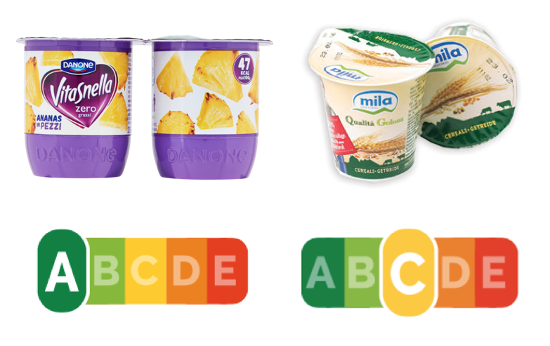 Ovviamente se devo scegliere tra due yogurt e guardo la tabella del nutri-score tra il danone vitasnella e il mila, che non conosco, ma che credo possa esser paragonato a un qualsiasi yogurt normale di qualità dovrei scegliere sicuramente il vitasnella… quindi mi porto a casa uno yogurt iperlavorato che ormai di yogurt non ha nulla e lascio sullo scaffale uno yogurt vero. Ottimo risultato direi…