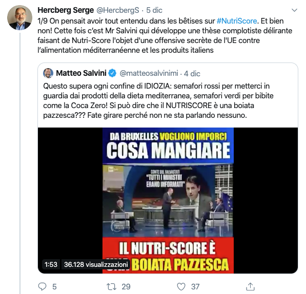 Nelle sue argomentazioni, Salvini difende l’interesse di certi gruppi industriali italiani, ma mai in nessun momento si preoccupa della salute dei consumatori… Il Nutri-Score è stato sviluppato per gli interessi dei consumatori e risponde alle loro richieste, anche se questo va contro certi interessi economici.