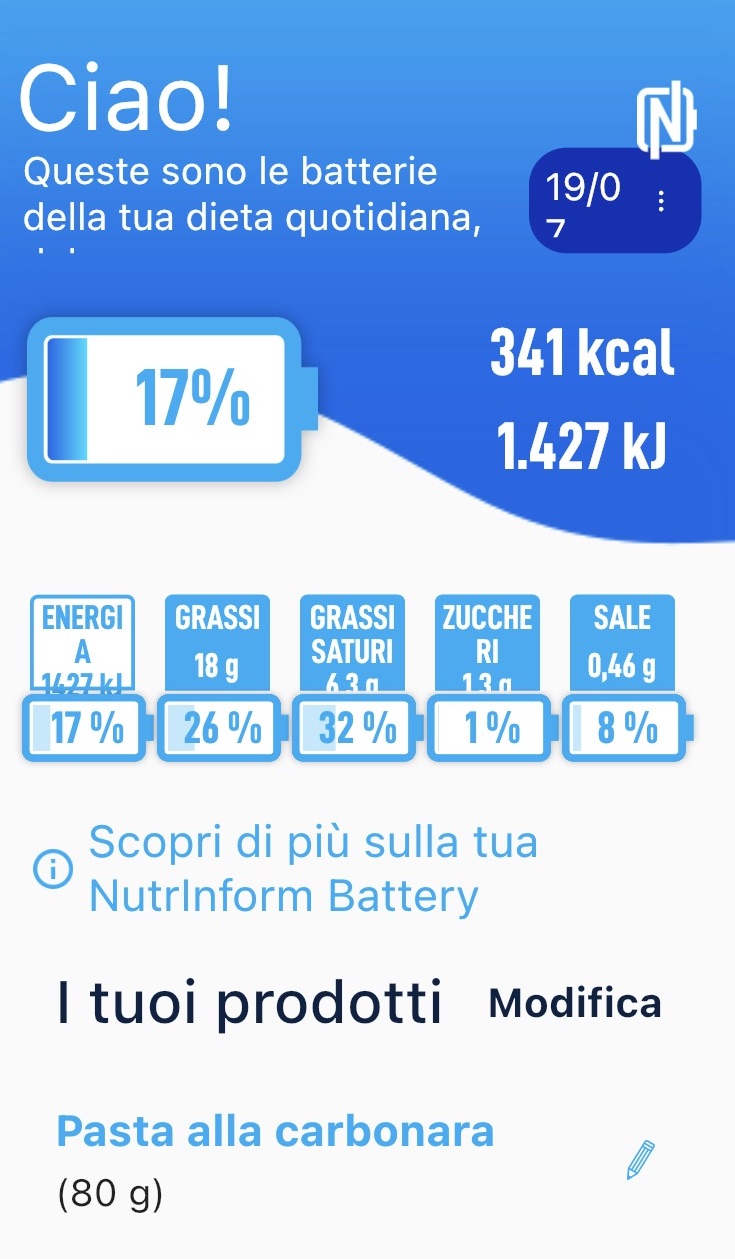 Questa app è indispensabile per poter utilizzare il NutrInform Battery altrimenti è impossibile vedere quando si raggiunge o supera il livello di riempimento delle cinque batterie considerate. L’uso del NutrInform Battery è un po’ laborioso: dopo aver diligentemente riportato nella app tutto ciò che si è mangiato nell’arco della giornata e aver riscontrato ad esempio un eccesso di acidi grassi saturi è necessario capire se, e in quale pasto, si è sbagliato nella scelta dei prodotti.
