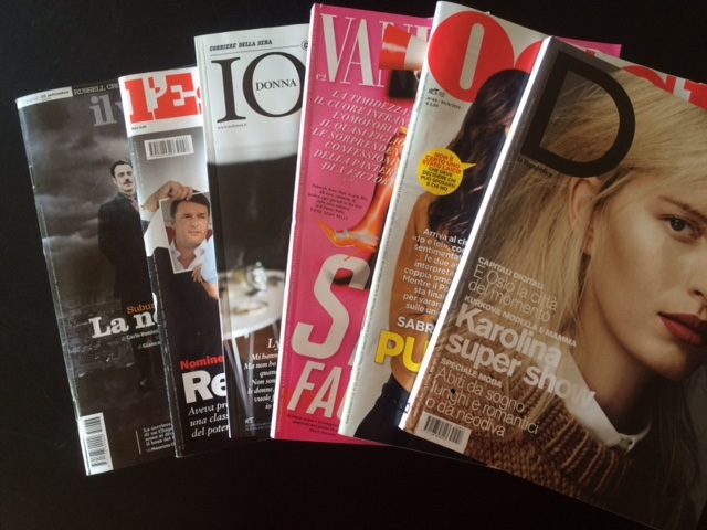 La campagna pubblicitaria ha coinvolto tutta  la stampa italiana. Alla fine di agosto sono stati coinvolti un decina di quotidiani  nazionali e locali (La Repubblica, Corriere della sera, La Stampa,Il secolo XIX, Il Resto del Carlino, La Sicilia…) nel mese di settembre i settimanali. L’elenco comincia con D La Repubblica delle donne e Io donna  del Corriere della sera Io Donna, seguono Il Venerdì di Repubblica,  L’Espresso,  Vanity Fair, Tv sorrisi e canzoni, GenteOggi ….