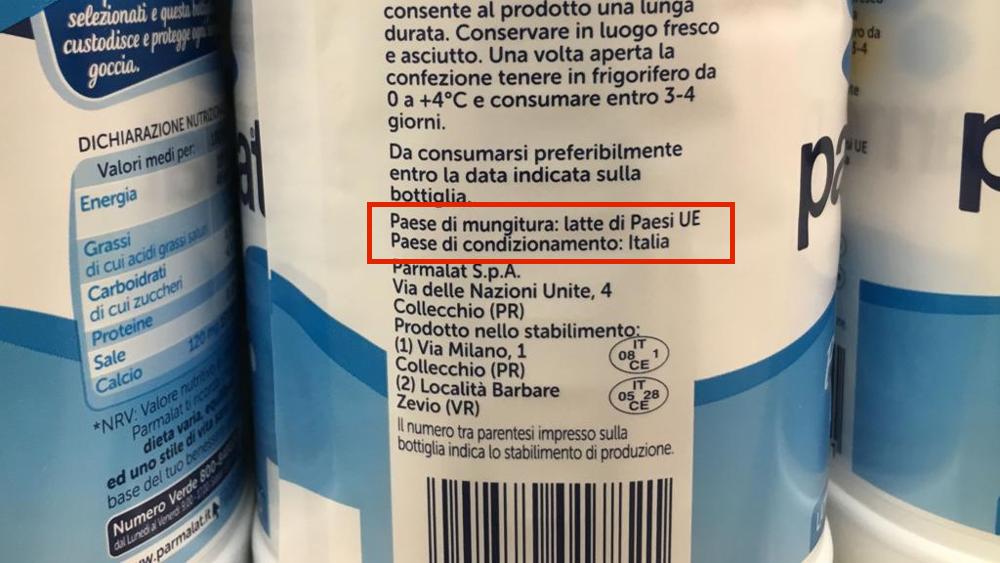 - “Latte trasformato in Paesi UE” (e/o “non UE”).