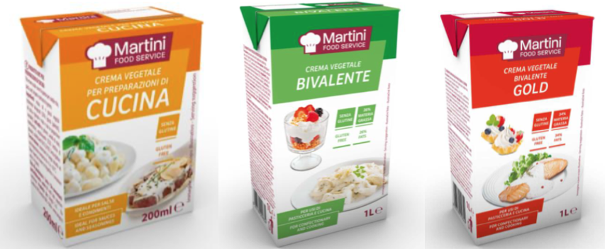 - Crema vegetale bivalente gold Martini Food Service in confezioni da 1 litro, con il numero di lotto 21069 e il Tmc 05/03/2022.