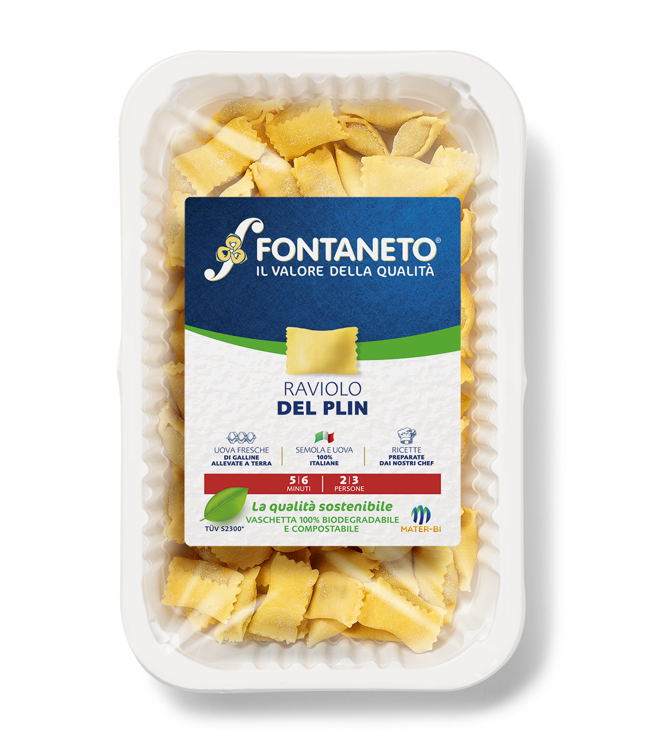 Ora è entrata nel novero anche una pasta fresca. A produrla è Fontaneto, un’impresa della provincia di Novara. La novità, al momento introdotta solo su due formati (ravioli del plin e agnolotti piemontesi), rappresenta un significativo passo avanti per lo sviluppo delle confezioni compostabili. L’obiettivo era infatti particolarmente complesso da realizzare, perché occorreva creare una barriera all’ossigeno e all’umidità capace di conservare per circa 50 giorni una pasta fresca ripiena. Tale barriera doveva essere nello stesso tempo anche trasparente e non doveva perdere le sue caratteristiche alle diverse temperature di frigo, freezer o a temperatura ambiente.