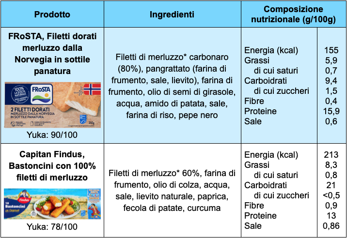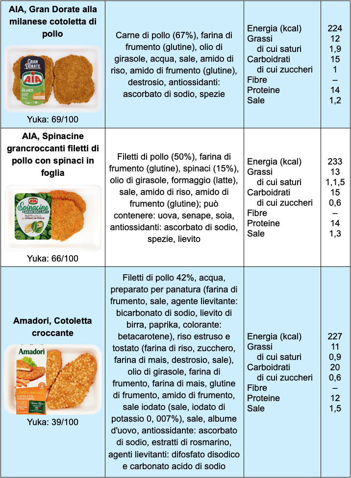 Le etichette di questi prodotti mostrano nella maggior parte dei casi lunghi elenchi di ingredienti: non meno di otto nelle preparazioni a base di pesce, che di solito sono le più semplici, mentre in quelle a base di pollo si superano i 10 ingredienti, che possono arrivare anche a 18 quando si aggiungono formaggio o spinaci, oppure panature ‘speciali’. E l’elenco è ancora più lungo per le preparazioni vegetali.