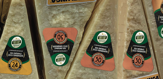 Le confezioni non sono sufficientemente chiare e solo il 28% riesce a distinguere il Parmigiano Reggiano da altri formaggi. Il Consorzio ha così ideato un sistema per valorizzare il prodotto tramite il logo aggiungendo una una serie di bollini corrispondenti alle principali caratteristiche del formaggio: la stagionatura, l’assenza di conservanti. Capofila di questo progetto, che prevede una seconda etichetta di forma triangolare che l’operatore attaccherà sulla pellicola del prodotto di vendita al banco gastronomia, sono state Esselunga e Basko (Gruppo Sogegross)
