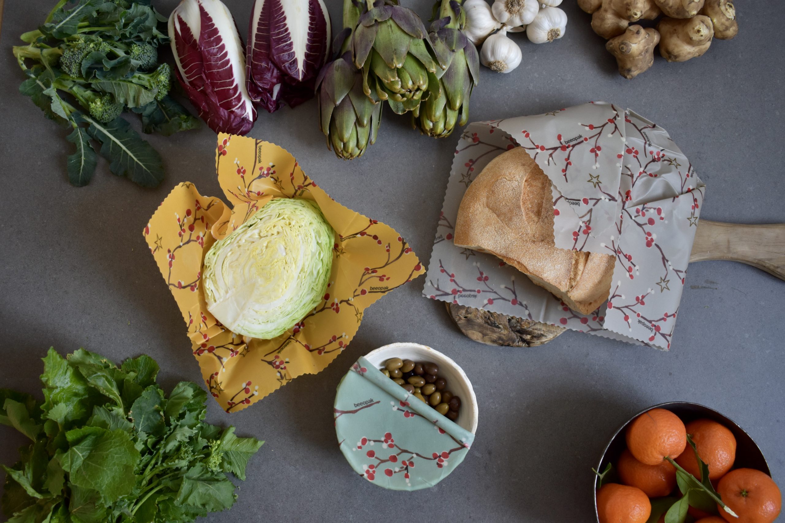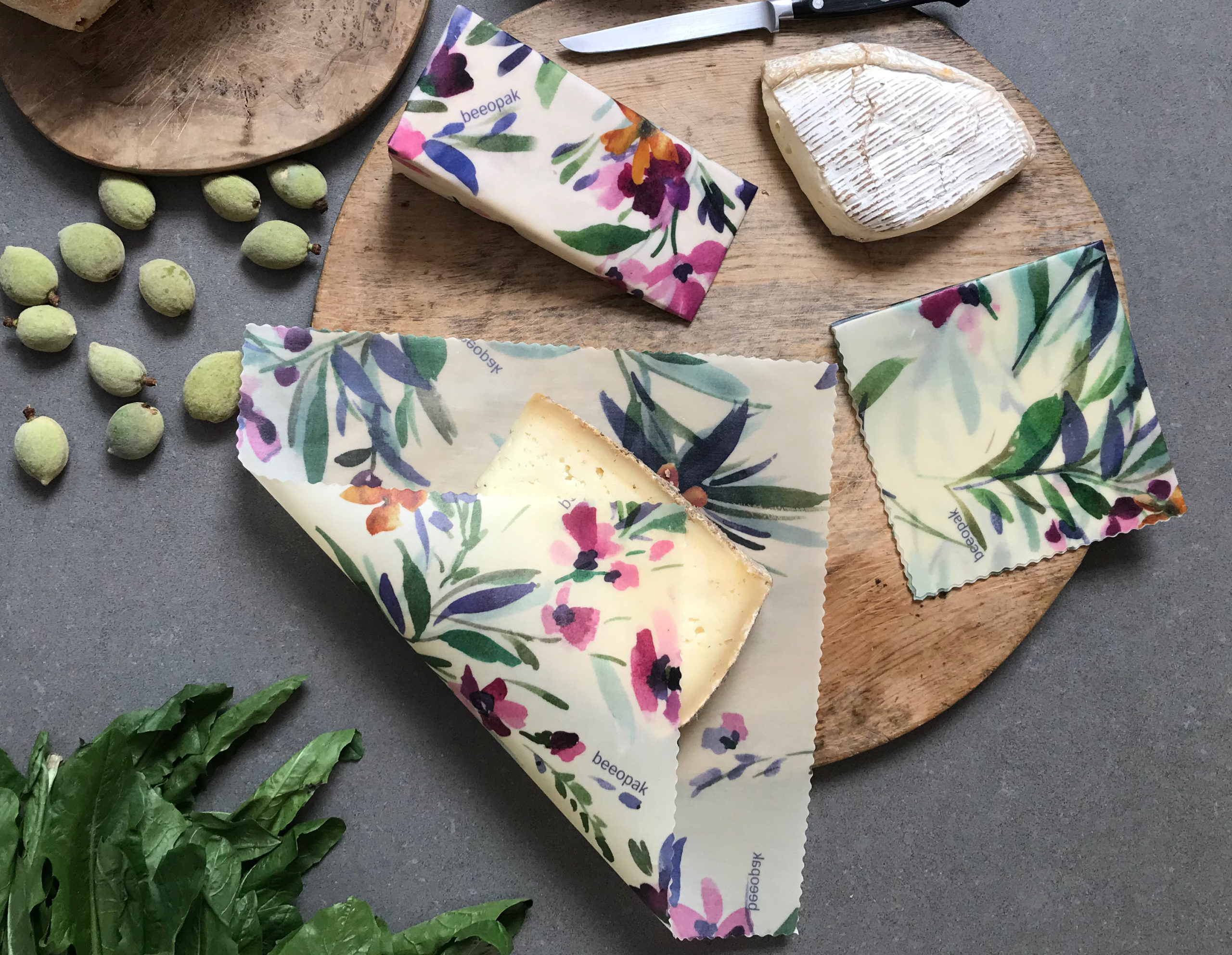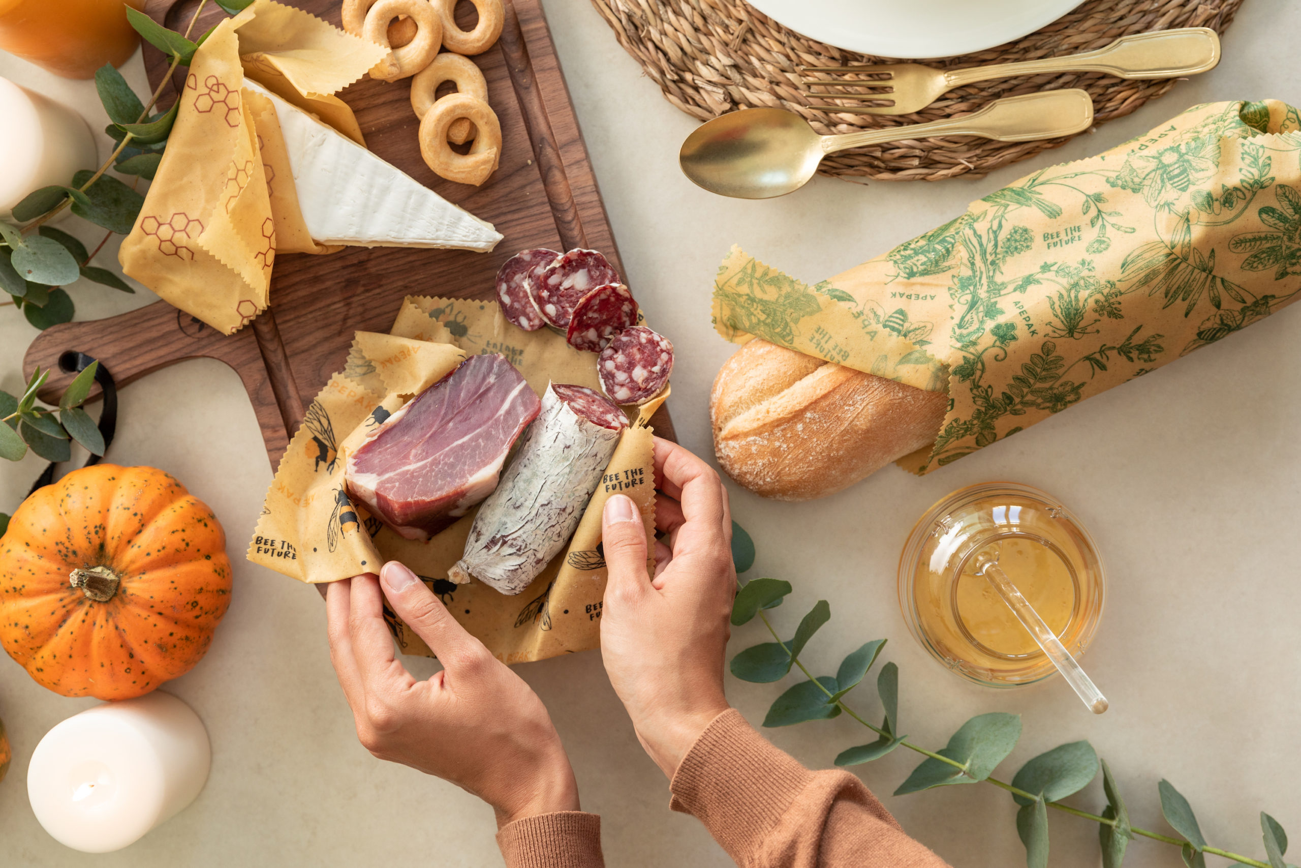 Apepak e Beeopak sono due prodotti innovativi made in Italy realizzati con cera d’api e cotone biologico certificato Gots (Global Organic Textile Standard) cioè derivante da coltivazioni che adottano metodi biologici e non impiegano pesticidi, oppure riciclato dagli avanzi dei laboratori tessili italiani. Hanno una tramatura sviluppata appositamente per assorbire la miscela a base di cera d’api proveniente da apicoltori locali, con l’aggiunta di resina di pino e olio vegetale, ma priva di sostanze chimiche dannose o estranee, come la paraffina e la stearina. Ecofriendly, biodegradabili al 100% e privi di sostanze nocive, entrambi gli involucri innovativi hanno ottenuto la certificazione ambientale Oeko-Tex e l’attestato Moca, che ne assicura l’idoneità per il contatto con gli alimenti. Secondo i produttori, il loro utilizzo (replicabile fino a 100 volte) farebbe risparmiare almeno un metro quadrato di plastica al giorno a famiglia, senza rinunciare all’efficace conservazione di cibi sia cotti che crudi, compresi pane, frutta e formaggi.