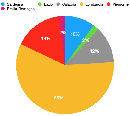 Qui sotto la distribuzione geografica degli allevamenti colpiti dall’inizio dell’epidemia (in percentuale).