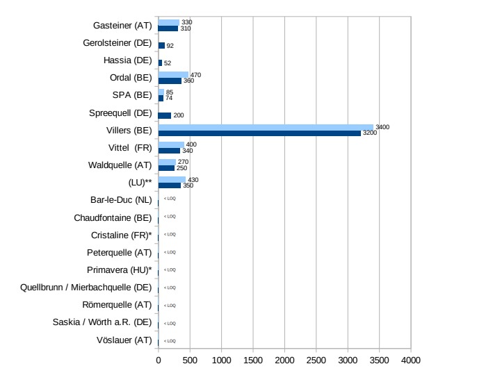 L’associazione ha condotto il test nell’estate del 2024 su, appunto, 19 bottiglie di acqua minerale provenienti da Austria (cinque), Belgio (quattro), Francia (due), Germania (cinque), Lussemburgo (una), Paesi Bassi (una) e Ungheria (una). Non è stato analizzato nessun marchio italiano. Le analisi hanno rilevato la presenza di residui quantificabili di TFA in 10 acque minerali su 19, oltre la metà. In sette casi, poi, il livello di contaminazione supera il valore limite dell’acqua potabile per i metaboliti dei pesticidi rilevanti (100 ng/l): si tratta dei marchi austriaci Gesteiner e Waldquelle, Ordal e Villers dal Belgio, Spreequell dalla Germania, Vittel dalla Francia e un marchio lussemburghese (mantenuto anonimo dall’associazione*).
