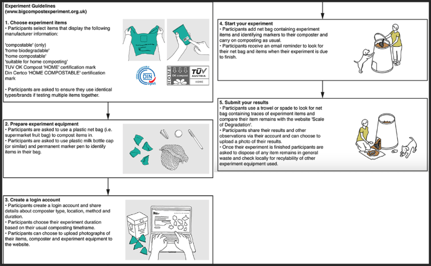 Per analizzare il comportamento dei singoli consumatori, i ricercatori hanno reclutato 9.700 persone residenti in tutto il paese, e le hanno sottoposte a un test in tre fasi, protrattosi per 24 mesi. Nella prima, i partecipanti sono stati invitati a rispondere a un questionario che esplorava le loro conoscenze in tema di plastiche compostabili e biodegradabili, e sulle differenze tra le due tipologie, sui metodi di compostaggio domestico, nonché sulle proprie abitudini. Nella seconda, a tutti è stato chiesto di effettuare il compostaggio domestico seguendo specifiche istruzioni, iniziando dal riconoscimento del tipo di plastica da smaltire, e poi tenendo il conto di ciò che immettevano, fotografando il risultato e caricando alcuni semplici dati in una specifica piattaforma: richieste assecondate da oltre 1.600 di loro. Nella terza, coloro che avevano provato il compostaggio sono stati invitati a verificare, dopo i tempi consigliati, che cosa era successo nei propri bidoni e, in particolare, a segnalare se erano rimaste tracce della plastica immessa, e che tipo di organismi avesse colonizzato il contenitore.