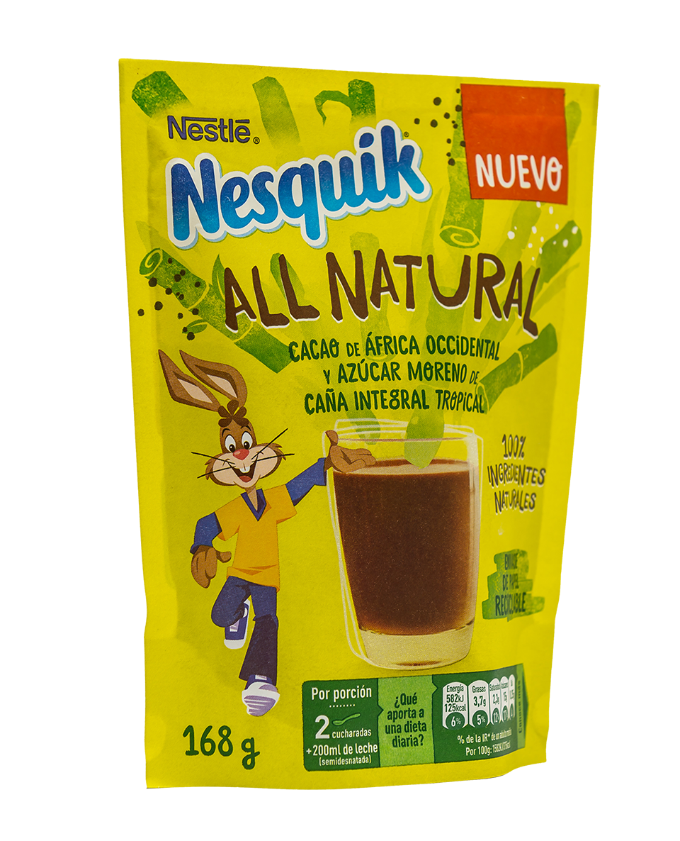 Cambiano gli imballaggi anche per le referenze del marchio Nesquik, che diranno addio all’iconica scatola gialla di plastica in favore della carta. Si comincia con la novità Nesquik All Natural che la multinazionale sta per lanciare in cinque Paesi europei: Italia, Francia, Germania, Spagna e Portogallo. Il nuovo prodotto è confezionato in una busta di carta patinata completamente riciclabile, e contiene quasi il doppio del cacao rispetto alla ricetta originale e zucchero di canna integrale (e per questo costerà il 40-50% in più).