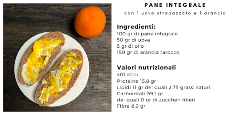 5. Pane integrale con un uovo strapazzato e un’arancia