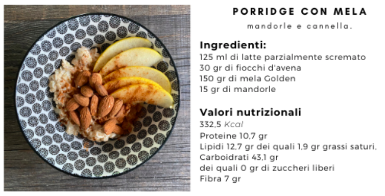 Il porridge si prepara facendo cuocere per circa 5-10 minuti tre cucchiai di fiocchi d’avena in un bicchiere di latte. Si sposa molto bene con la frutta cotta, come la mela o la pera (non serve prepararla prima, sarà sufficiente tagliare la frutta a fette sottili e cuocerla assieme ai fiocchi d’avena, in modo che si “sciolga”). Come per l’overnight oatmeal, si tratta di una colazione molto saziante e versatile, potete infatti abbinare i fiocchi d’avena con la frutta fresca e a guscio che più vi piace, cambiando di fatto ogni giorno abbinamenti e sapori.