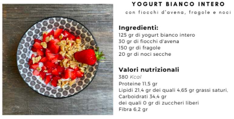 2. Yogurt bianco intero con fiocchi d’avena, fragole e noci