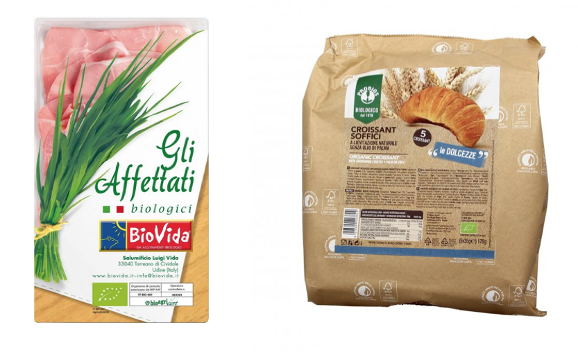 Le sfogliatine al mirtillo Germinal, non contengono additivi, ma troppo sale (1,3%) e troppi grassi saturi (9,2%), oltre a sciroppo di glucosio-fruttosio (Yuka: 40/100). Lo stesso vale per i Croissant soffici Probios, penalizzati dalla presenza di troppi grassi saturi e un po’ troppi zuccheri, come accade per la maggior parte delle brioche confezionate. Il prosciutto cotto e altri salumi venduti preaffettati, anche se bio, spesso contengono nitriti, additivi molto discussi, utilizzati come conservanti.