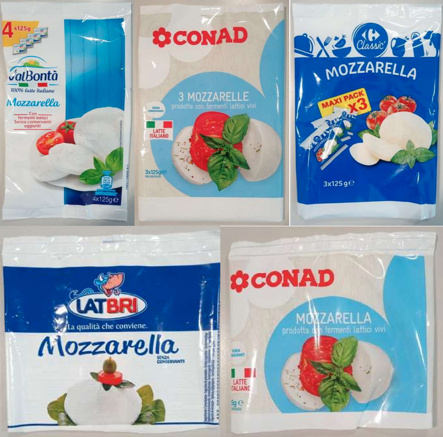 Il Ministero della Salute ha pubblicato anche il richiamo da parte del produttore delle mozzarelle Valbontà Penny, Latbri, Conad e Carrefour ha diffuso quello della mozzarella a proprio marchio. La ragione indicata è la possibile presenza di corpi estranei metallici. I prodotti coinvolti sono i seguenti: