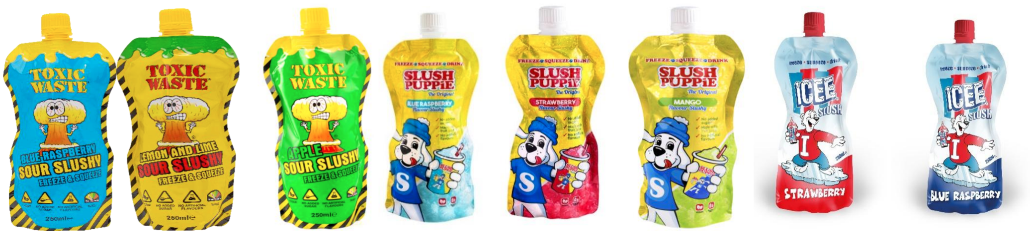 - Slush Puppie, gusti lampone, fragola, e mango, in confezioni da 250 ml, venduti dalla settimana 13 del 2024;
