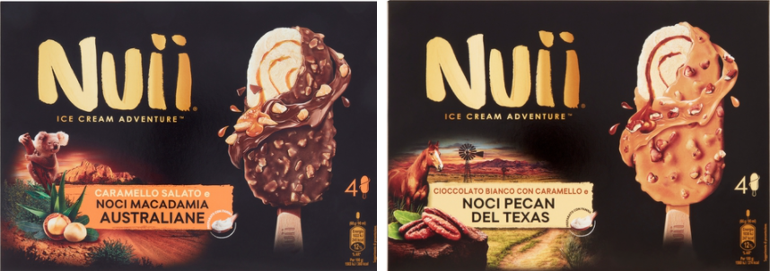 - Nuii cioccolato bianco e vaniglia di Java, in confezioni da 268 grammi (4 pezzi) appartenenti ai lotti numero MI0127, MI0128 e MI0129 con il Tmc 05/2023, MI1088 e MI1089 con il Tmc 03/2023, MI1148 e MI1149 con il Tmc 05/2023;