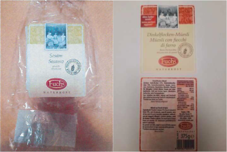 - Müesli con fiocchi di farro (Dinkelfloken-Müesli) Fuchs – Naturkost in confezioni da 375 grammi con il numero di lotto L20210830 e il Tmc 30/08/2021.