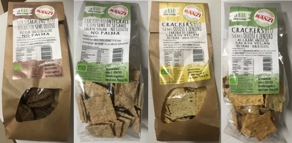 - Crackers Bio semi oleosi e zenzero ai grani antichi in confezioni da 150 grammi con i Tmc 21/03/2021, 28/03/2021, 10/04/2021, 22/04/2021, 30/04/2021 e 12/05/2021