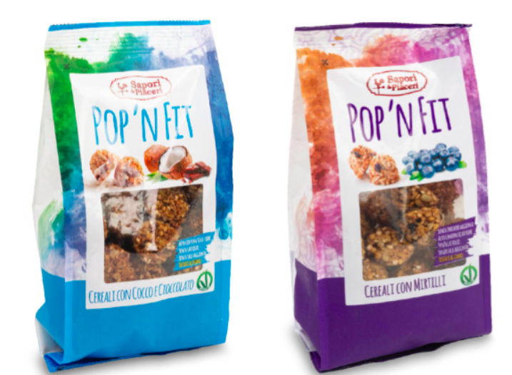 - Pop’N Fit bocconcini di cereali tostati al forno con avena e mirtilli in confezione da 125 grammi con il numero di lotto 2018906 e il Tmc 07/07/2021
