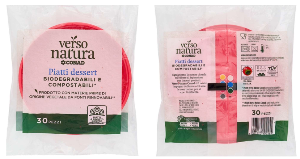 La catena di supermercati Conad ha richiamato un lotto di piatti dessert biodegradabili e compostabili del proprio marchio Verso Natura, perché a seguito di controlli interni, il prodotto risulta non conforme al contatto con alcuni alimenti. Il prodotto interessato è venduto in confezioni da 30 grammi con il numero di lotto L0312410310945A (EAN: : 8003170102255).