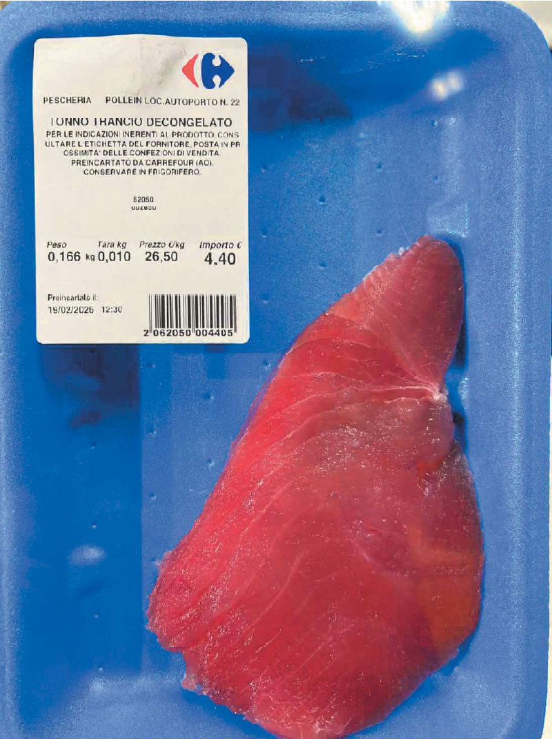 I supermercati Carrefour, invece, hanno segnalato il richiamo da parte dell’operatore di un lotto di tonno a pinne gialle decongelato a marchio Copromar. Il motivo indicato sull’avviso di richiamo, in questo caso, è la presenza di istamina oltre i limiti di legge. Il prodotto coinvolto è venduto in vaschette a peso variabile, con il numero di lotto SNB073M0D180762 e la data di scadenza 20/02/2026. Anche il Ministero della Salute ha diffuso il provvedimento (aggiornamento del 23/02/2026).