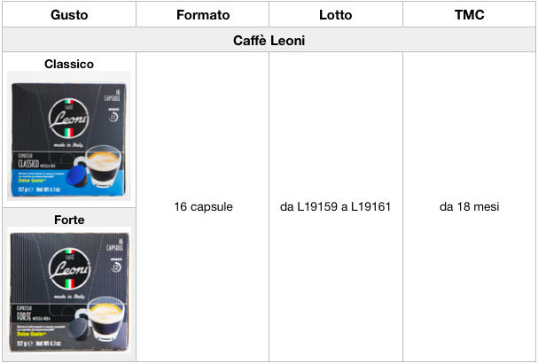A scopo precauzionale si raccomanda di non utilizzare le capsule di caffè con i marchi e i numeri di lotto segnalati e restituirle al punto vendita d’acquisto.