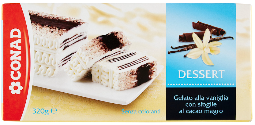 Il Ministero della salute ha pubblicato l’avviso di richiamo di un lotto di dessert gelato alla vaniglia a marchio Conad perché è stato utilizzato l’imballaggio errato: all’interno delle confezioni di “Dessert – gelato alla vaniglia con sfoglie di cacao magro” (vedi foto sopra), che riporta in etichetta la dicitura “senza glutine”, si trova il prodotto “Dessert – gelato alla crema e cioccolato con cereali” (vedi foto sotto), che invece contiene glutine.